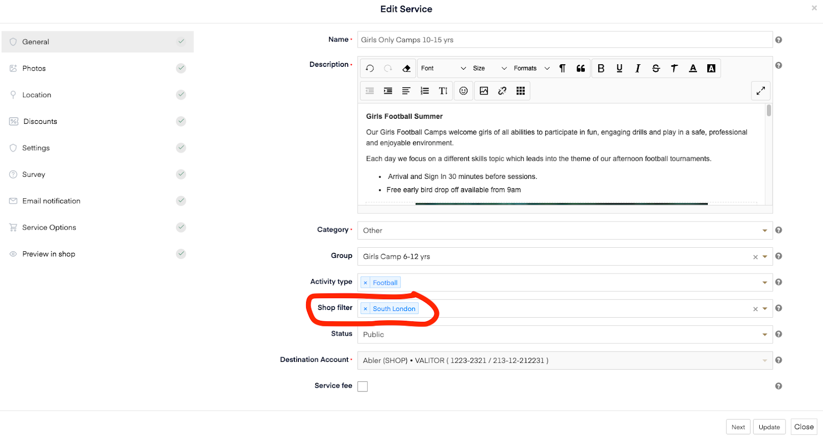 Once your filters are created, you can apply them when creating or editing a programme (service).