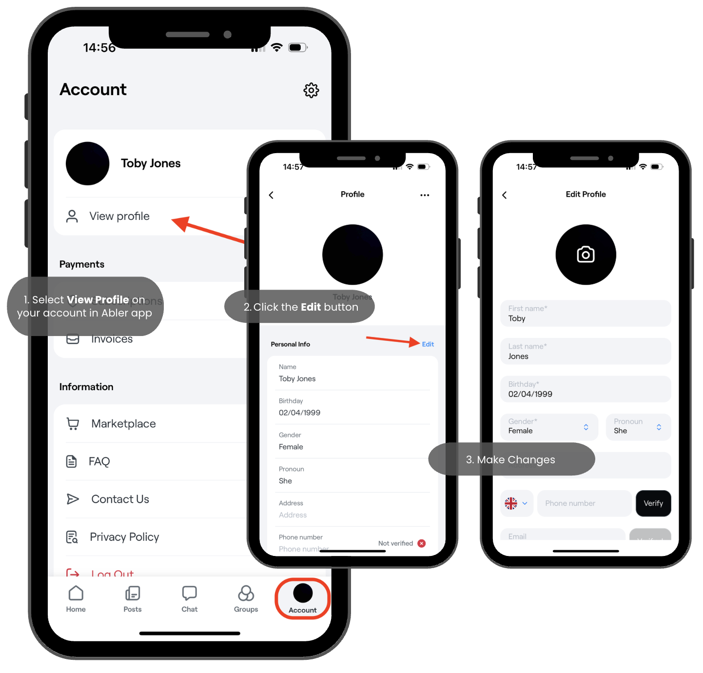 Þú getur uppfært persónuupplýsingar þínar í Abler appinu. Hér eru leiðbeiningar um hvernig á að gera það.