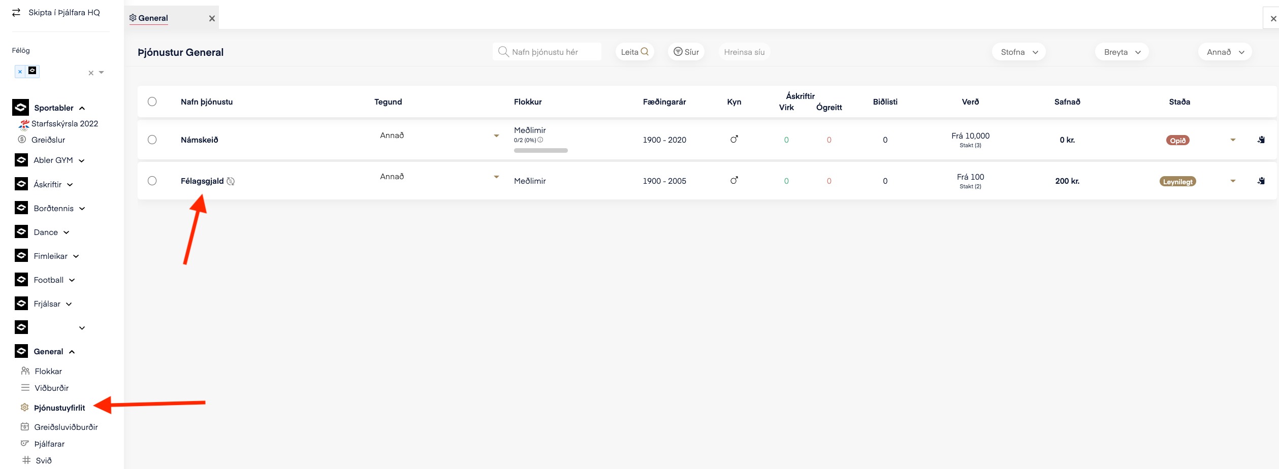 Þú getur horft á myndband neðst á síðunni sem sýnir hvernig á að skrá iðkanda í þjónustu.